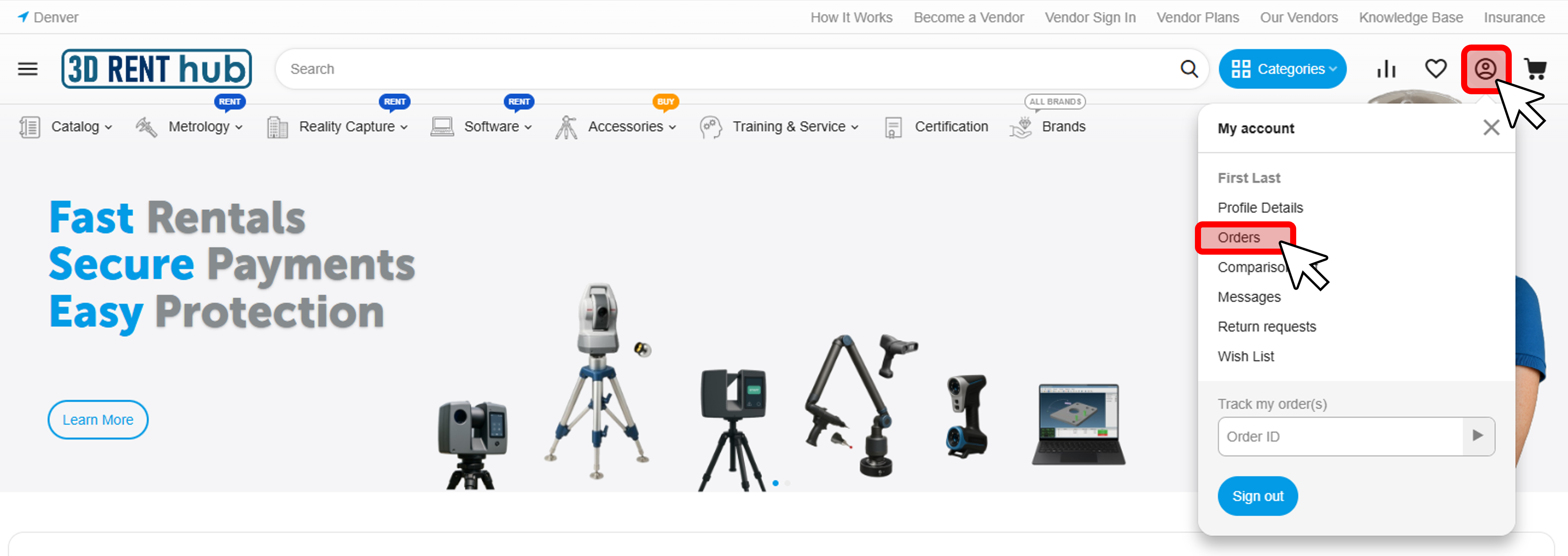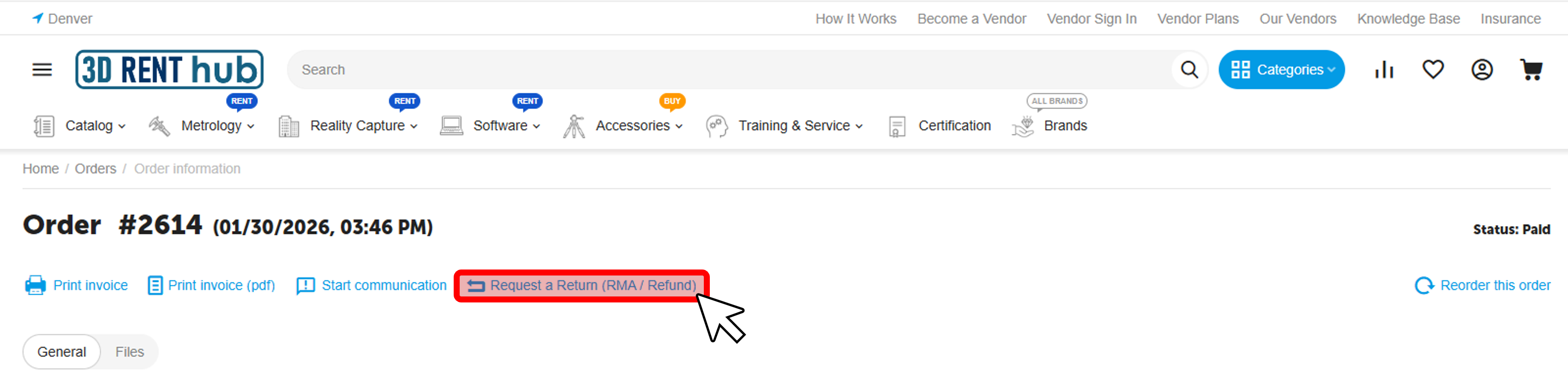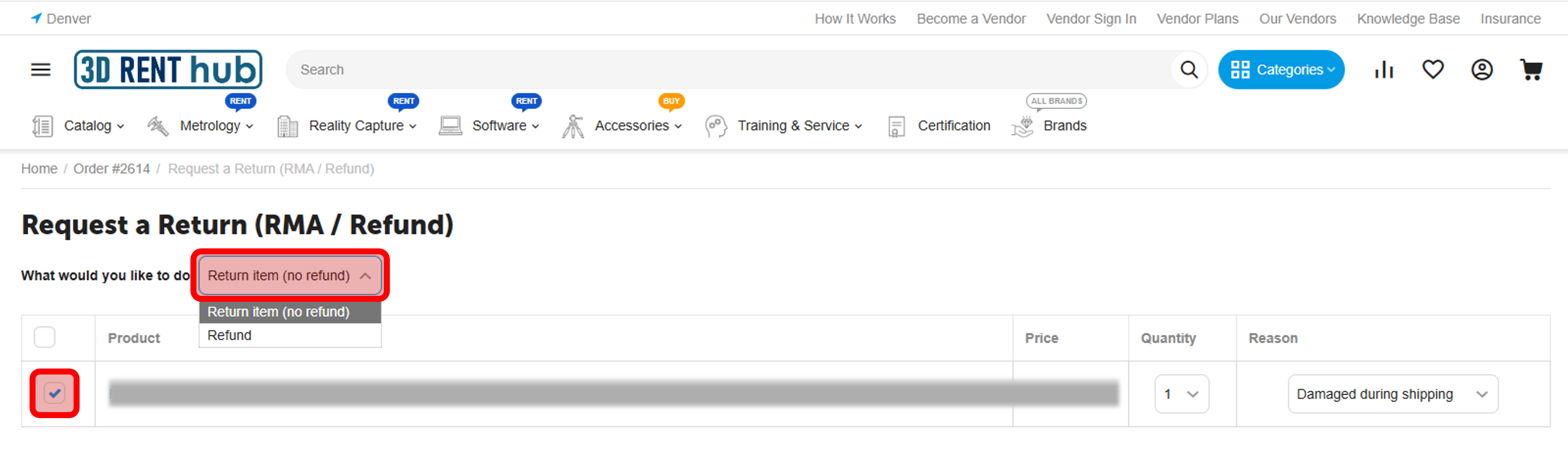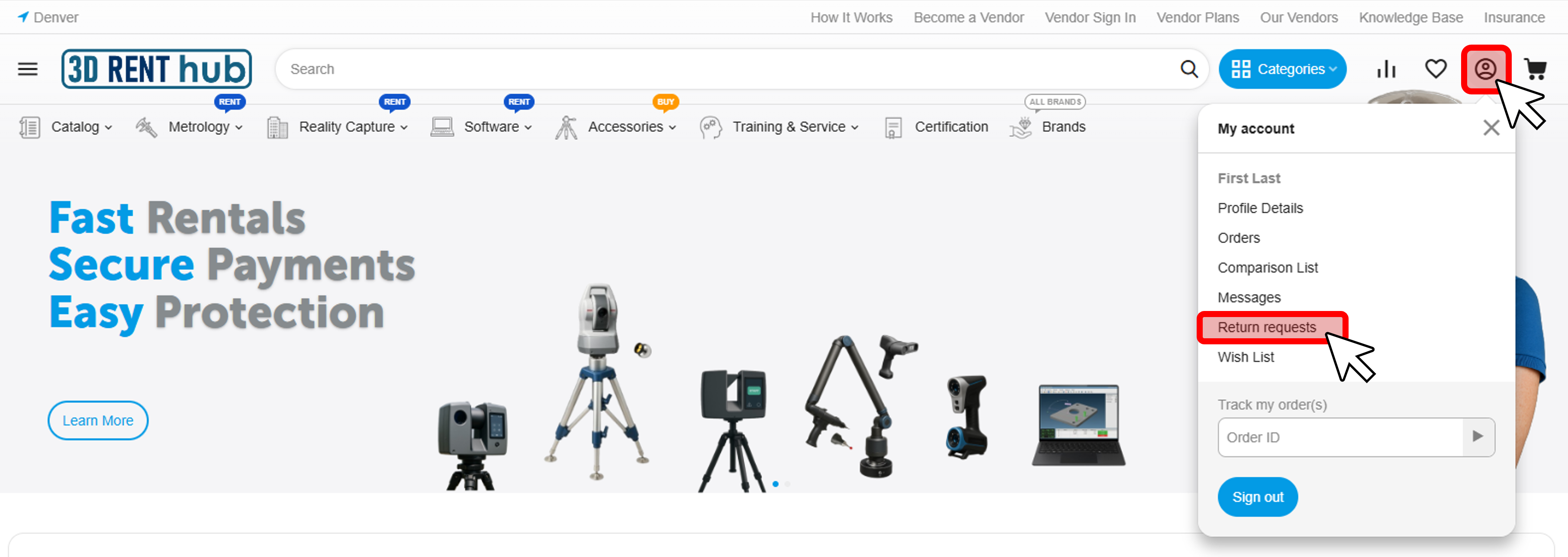 3D RENT hub facilitates the return process but does not inspect equipment or decide outcomes